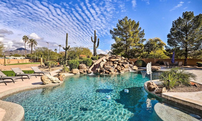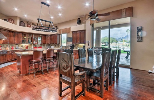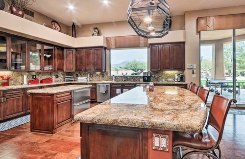 Your own private slice of desert paradise awaits at this 4-bed, 4.5-bath Scottsdale home, with multiple living spaces, a home theater, and endless entertainment for you and your loved ones to spend quality time! You’ll have almost 2 acres all to yourself, so you can relax poolside with stunning mountains as your backdrop, play a round of volleyball, or lounge on the covered patio. While uniquely enjoyable on its own, this vacation rental is also close to spring training and golf courses!