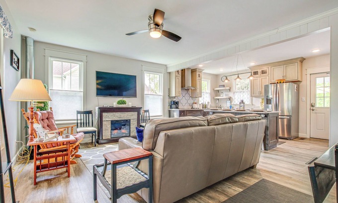 Looking to enjoy the luxurious lake lifestyle? Book a trip to 'Mill Street Haven,' a 3-bedroom, 2-bathroom vacation rental house in Green Lake. Located just 2 blocks from the water and offering free WiFi, a gourmet kitchen, and a cozy corner for fun and games, this 1,260-square-foot home is ideal for families. Whether you choose to spend your days relaxing on the furnished patio, splashing in Green Lake, or skiing at Cascade Mountain, you're sure to have an unforgettable stay!