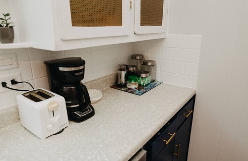 The home boasts spacious living areas adorned with original accents, vaulted ceilings, and an eclectic blend of mid-century modern and bohemian chic décor. You will find everything you need for a comfortable stay, including high-speed WiFi, streaming platforms, and a fully equipped kitchen ready to cater to your guests. The upstairs dry bar is ideal for pre-wedding festivities, complete with a mini-fridge, surround sound system, and gaming table for some fun entertainment. Relax after your special day in luxurious memory foam beds and rejuvenate in the spa-like bathroom with Bluetooth speakers for your favorite tunes.