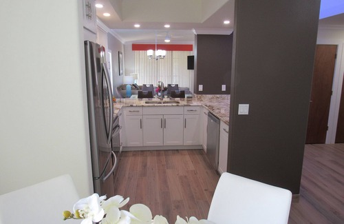 If you love to cook, the fully equipped kitchen has everything you need to prepare your favorite meals, with all-new appliances. For added convenience, you’ll also find a washer and dryer right next to the guest bathroom.
