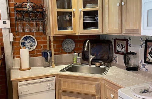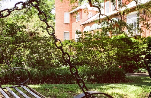 Your sweet getaway awaits in Monroe at this comfortable, delightful carriage house adjacent to the historic Layton Castle. With 2 bedrooms including a comfortable queen bed downstairs with adjacent master bath & jetted bathtub and 2 twin beds upstairs with a second bath and converted clawfoot tub/shower this adorable property is perfect for a small group of guests. Explore the gated and fenced 5 acres, full of old trees and plantings - a huge ancient magnolia and live oaks, catalpa, huge crepe myrtles and old world camellias - it is a lovely, tranquil place.