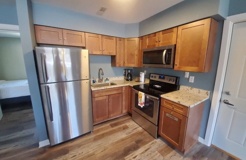 While you're here, you can enjoy all the comforts of home and more, including a refrigerator and an oven, as well as a stovetop and free WiFi. Other amenities include a freezer, towels, kitchenware and utensils, and soap.