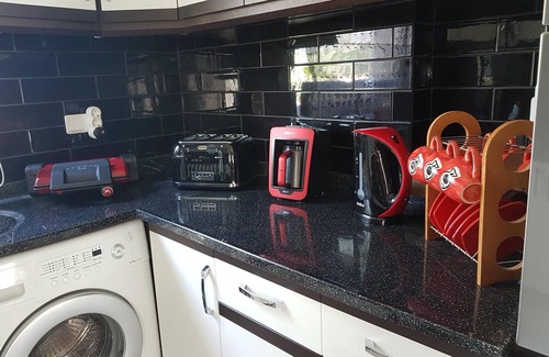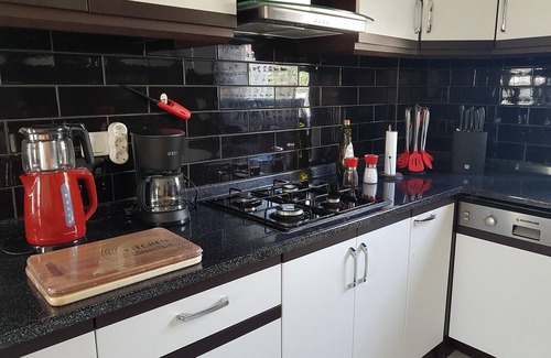 The kitchen. Should you wish to cater for yourself you will find all you need to cook, prepare and dine. There is a large fridge freezer, electric oven, 4 ring gas hob, washing machine, dishwasher, sink, microwave, 4 slice sandwich toaster, kettle, coffee machine, Turkish coffee maker, Turkish tea maker, juicer. Together with all pots and pans you would need. We have extensive crockery and cutlery, including plastic cups for safe poolside use. As well as the obligatory bottle openers (very important!!!).
