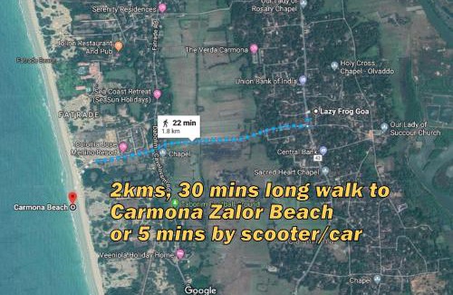 Offering free WiFi, Lazy Frog Guest House offers accommodations in Carmona. Free private parking is available on site. Each room has a flat-screen TV. You will find a kettle in the room. Every room is fitted with a private bathroom. Cavelossim beach is 1.9 mi away. Calangute is 26 mi from Lazy Frog Guest House, while Panaji is 22 mi from the property. The nearest airport is Goa International Airport, 15 mi from Lazy Frog.