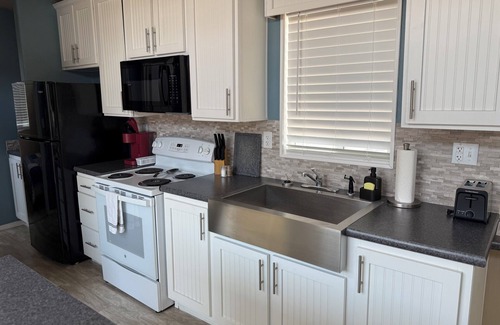 Welcome to our charming tiny home near Lake Powell! Adjacent to the lively Pilot Travel Center, our retreat embraces the area's vibrant spirit. Experience the dynamic energy of the highway, complementing the tranquil surroundings. Just off Highway 89, moments from Wahweap Marina and Glen Canyon Dam, our cozy oasis combines comfort, convenience, and natural beauty.