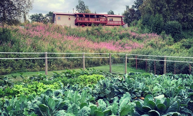 The home sits on 21 acres on the shoulder of Lazy Mountain, just 7 miles northeast of Palmer. Guests can go for walks, cross country ski, snowshoe on trails without ever having to leave the property. Moose live in the area, and can be seen any time of the year; in the spring they will have calves with them. Neighbors raise bison and elk, and also board horses. Mountain views abound. Guests love our proximity to Palmer, the Alaska State Fair, Hatcher Pass, Matanuska Glacier, the Musk Ox and Reindeer farms, Lazy Mountain hikes, and more.