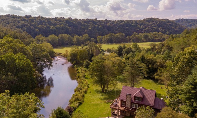 Lazy River Lodge - Riverfront home with fire pit, hot tub! is located in Crumpler. Lazy River Lodge - Riverfront home with fire pit, hot tub! provides accommodation, featuring Air Conditioner, Parking, Sports/Activities, among other amenities. This House features Air Conditioner, Parking, Sports/Activities, to make your stay a comfortable one.