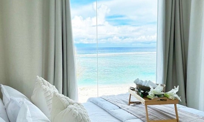 We have a very spacious room with attached toilet, in order our space can accommodate 2 people. Large, perfectly working kitchen set. A seating area where guests can unwind and watch television. A balcony with a breathtaking panorama. You can enjoy a breathtaking view of the beach and ocean while you're laying down on the master bedroom bed. And enjoy a mesmerizing sunrise while laying down on the comfy bed. Our property is directly across from the beach and the ocean.