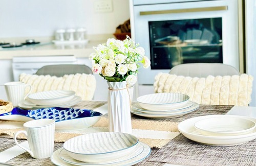 Large, perfectly working kitchen set. A seating area where guests can unwind and watch television. A balcony with a breathtaking panorama. You can enjoy a breathtaking view of the beach and ocean while you're laying down on the master bedroom bed. And enjoy a mesmerizing sunrise while laying down on the comfy bed. Our property is directly across from the beach and the ocean.