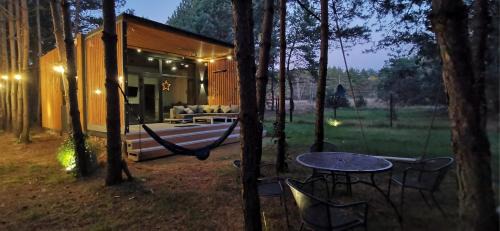 LEŚNY LUZ domek całoroczny w lesie nad jeziorem, duży taras, basen, boisko do siatkówki, kino plenerowe, ognisko i grill is a recently renovated vacation home in Chańcza where guests can make the most of the garden and barbecue facilities. This property offers access to a terrace, free private parking, and free Wifi. The pool features a fence and pool views. The air-conditioned vacation home consists of 2 bedrooms, a living room, a fully equipped kitchen with a dishwasher and a coffee machine, and 1 bathroom with a shower and a hair dryer. Towels and bed linen are available in the vacation home. The property has an outdoor dining area. As an added convenience, the vacation home offers packed lunches for guests to bring on excursions and other trips off-property. For guests with children, LEŚNY LUZ domek całoroczny w lesie nad jeziorem, duży taras, basen, boisko do siatkówki, kino plenerowe, ognisko i grill features outdoor play equipment. Guests can also warm up near the outdoor fireplace after a day of cycling. Świętokrzyski National Park is 24 miles from the accommodation, while Bishops’ of Krakow Palace is 30 miles from the property. Radom-Sadkow Airport is 60 miles away.