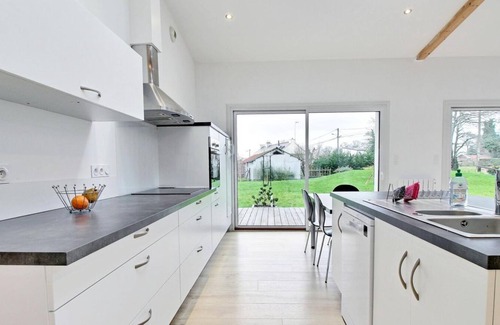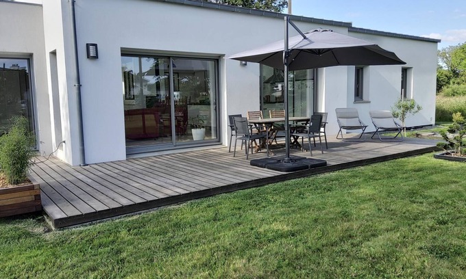 Single-storey house organized as follows: - Spacious entrance hall with storage - Kitchen open to the living / dining room - Bathroom with shower and bathtub - 2 independent toilets 4 bedrooms: - A bedroom with a 140 x 190 bed - A bedroom with two 90 x 190 beds - A bedroom with a 160 x 200 bed - A bedroom with a 90 x 190 bed (possibility of accommodating an additional person) Exteriors: Garden and terrace of 34m2 with table, chairs, barbecue and deckchairs Garage for storage and parking of a vehicle Private parking spaces in the property Accommodation located in the immediate vicinity of the departmental road. Enjoy the comfort of this recent accommodation while enjoying the brightness of its living room open to the outside. Just 700m from the village and its shops, the house is ideally located in the heart of the peaceful town of Péaule, near Vilaine. During your stay, you can discover the riches of this territory, in the heart of the bocage, thanks to a 20-kilometer hiking trail. If you prefer lazy days, the beaches of Billiers, Damgan and Pénestin await you about 20 minutes away. For friendly moments with family or friends, the Branféré Animal and Botanical Park is just 10 minutes away. Finally, don't miss the small towns of character of Rochefort en terre (elected French Favorite Village in 2016) and La Roche Bernard.