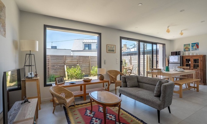 Cocoonr∕Booka&pay agency offers this 50 m² house for rent in Locmiquélic, which can accommodate up to 4 guests. Located in a typical neighborhood of small fishermen's houses, with no neighbors opposite, it consists of a 28 m² living room, a fully equipped kitchen, two bedrooms, a bathroom with shower, you can enjoy a very bright south-west facing outdoor area of approximately 40 m², including a 20 m² terrace on the same level. Wi-Fi (fiber optic) included, we are waiting for you!