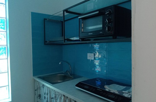 At 10 km the wonderful baroque town: LECCE. The two-room apartment consists of a double bedroom with air conditioning, with external view for the exclusive use of guests, bathroom with shower and hairdryer, living room with equipped kitchen, color TV and double sofa bed. Washing machine shared with the other guests, available on request. The space outside is large, with even a shower.