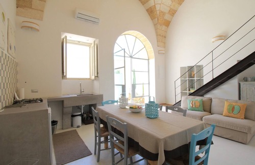 Ancient residence renovated with wisdom and elegance in Gagliano del Capo. The charming residence has a lovely external veranda equipped with a small terrace - solarium covered by a pergola.