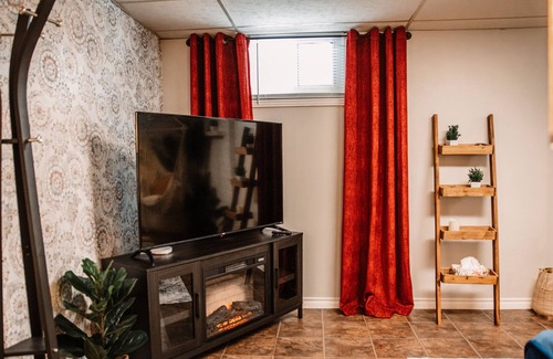 Guests can enjoy the comfortable velvet couch & lounge in the hanging chair. On those chilly winter nights, turn on the fireplace and relax while watching any program on the 55" TV. The shared driveway can accomodate two vehicles.