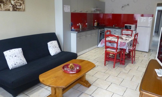 Fully renovated single storey terraced house. Enclosed land without vis-à-vis 25 m² including terrace with pergola. Living room / kitchen (microwave, freezer) with lounge area (TV). Bathroom. WC. 1 ch. (2 single beds) giving access to 1 bedroom. (1 double bed). Electric heating. Cleaning option 25 euros, if animal 35 euros. 1 small animal accepted. Childcare equipment. Telephone at the owner's home. Itinerant businesses. Village in the heart of the forest with many marked trails and access to the Voie Verte. Mountain bike rental, canoeing, kayaking and climbing club in the village. Terr'altitude (tree climbing course, zip line) 3 km. Givet 20 km. Belgium 25 km. Charleville-Mézières 35 km. Citadel of Dinant 40 km.