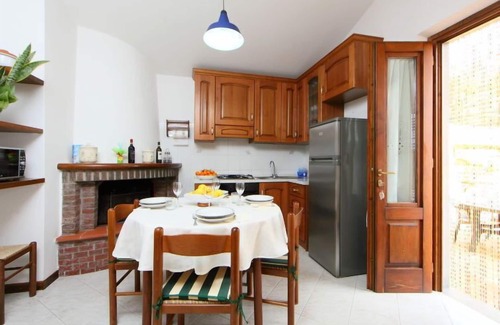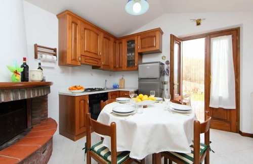 3-room house 75 m2 on 2 levels. Simple and practical furnishings: living room with dining table and TV (flat screen). Exit to the garden. 1 double bedroom. 1 room with 1 french bed (140 cm). Kitchen-/living room (4 hot plates, oven, microwave, freezer) with dining table, open-hearth fireplace. Shower/bidet/WC. Oil heating (extra). Heating available only from 01.11. to 15.04. Patio 20 m2, roofed. Partial distant view of the sea, the lake and the valley. Facilities: washing machine, children's high chair, baby cot for up to 2 year olds. Internet (WiFi, free). Parking at the house. Maximum 2 pets/ dogs allowed. IT046018C263M5C2MI