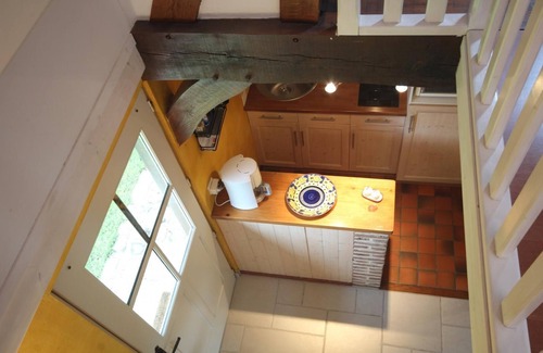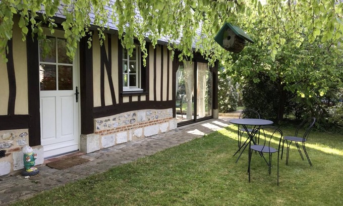 Ground floor: kitchen-sitting room, TV, living room separated by glass sliding door, shower room and toilet, washing machine. Upstairs: mezzanine with 3 single beds separated in 2 sleeping areas. Electric heating at extra charge. Linen rental. Housecleaning service: 40€. Free Internet access available. Detached holiday cottage in the heart of the village and the Regional Natural Park, close to many unspoilt cultural and natural sites (River Seine 300 m away, Brotonne forest 1 km away). Cob and half-timbered house. Refined decor and finishing touches. Private part in the owners' unenclosed garden planted with trees, close to their house.