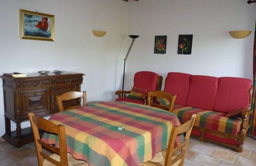 On the ground floor: well-equipped kitchen (dishwasher, microwave), living/sitting room with fireplace (wood provided), digital TV, 1 bedroom with 1 double bed, shower room and toilet accessible for people with reduced mobility, washing machine. Upstairs: 1 bedroom with 2 single beds, small bathroom and toilet. Electric heating at extra charge. Optional housecleaning service: 30€. Linen rental. Detached cottage located in a former bread oven completely renovated. Unenclosed private garden, barbecue, bicycles available.