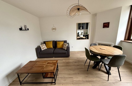 Located in the heart of Calais, just steps from the town hall, this charming apartment can accommodate up to 4 people. Beautifully decorated in a modern and cozy style, it offers all the comfort you need for a pleasant stay. The central location allows you to easily enjoy shops, restaurants, and the city's main attractions while benefiting from peace and quiet thanks to its orientation toward the building’s garden. Whether you're visiting for business or leisure, this spacious and bright accommodation guarantees a memorable experience in Calais.
