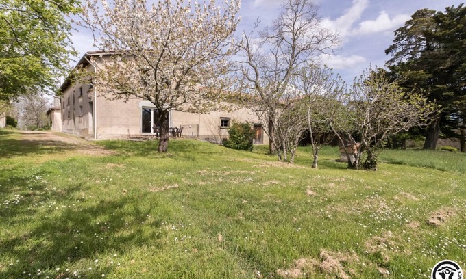 In a huge park (to be shared with the owners and tenants of the small gîte) where you can stroll in peace and quiet, you will be located 5km from the fishing lake of Sainte-Foy-de-Peyrolières as well as Saint- Lys where you will find all the shops and services. This bright and well-equipped cottage also offers a private terrace and garden. The interior has been fitted out by the owners, with an original living room equipped with a bar separating the lounge area from the kitchen. The house is adjoining the old forge where Monique's family prepared their trotting horses. This property was in fact divided between the main house, the winery, the forge and an annex farm, and extended over more than 70 hectares. She has been in the Levrat family for over 70 years. Ideally located, you will be 30km west of the historic center of Toulouse and 17km from the Isle-Jourdain leisure center in the Gers (possibility of swimming, wake-boarding, etc.). Muret, its Bonnets swimming lake, as well as the Aqualudia water park are 20km away. The African Safari Zoo is 10km away. The Ramée leisure center (swimming lake and golf course) is 20km away. On the ground floor: large living room (fireplace and 1 90cm bed) with American kitchen opening onto a terrace. Upstairs: mezzanine, 2 bedrooms (2 single beds 90cm) (2 single beds 90cm), bathroom, WC. Electric heating. Parking area, fiber internet. Reservation 14 nights minimum. Arrivals/Departures on weekdays between 8:30 a.m. and 9 a.m. in the morning and from 5 p.m. in the evening. 10% reduction from 21 consecutive nights included. Another gîte for 3 people on site. Please note, depending on the weather conditions, the grass in the park may be high. A gardener may have to cut this grass during your stay, you will be notified. Upon arrival, an outbuilding is being rebuilt, construction machinery can make noise at reasonable times