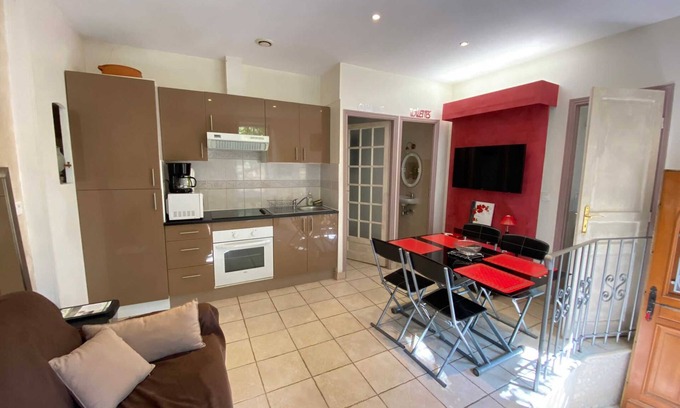 You will have a 33m² apartment in the heart of the old historic pedestrian village of La Turbie. The apartment consists of a bedroom with a 140cm bed, wardrobe and bedside tables, a small living room with a very comfortable convertible sofa, kitchen equipped with microwave, stove, toaster, kettle, electric coffee maker, refrigerator , table + chairs, crockery etc... a bathroom with toilet. Ideal apartment for visiting the region or relaxing. Located about ten kilometers and 500 meters above sea level above the Principality of Monaco in the center of the charming and picturesque medieval village of La Turbie on the Côte d'Azur with its restaurants, shops and historic monument "Le Augustus Trophy. Studio located rue du guet in la Turbie near the entrance to the Trophée d'Auguste, you can enjoy on foot the many amenities of the village, post office, town hall, restaurants, municipal swimming pool, shops, etc... A market is located held in the village square on Thursdays.