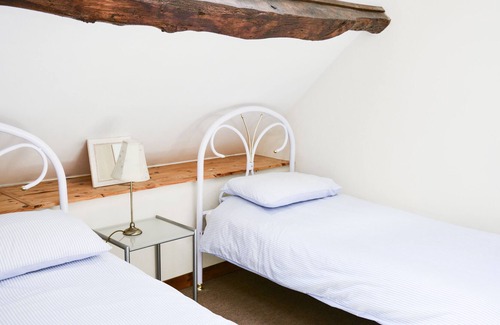 It is located midway between Bagnoles de l'Orne and Lassay-les-Chateaux, both about 8 miles away. Bagnoles is a well known French spa town famous for its waters and healing properties and there is an excellent selection of restaurants in the town. Lassay is known for its chateaux and also has a delightful rose garden. The picturesque medieval town of Domfront with its chateau and church of St. Julien is 17 miles away. Though all amenities are nearby, our location is very tranquil and you can feel the peace and quiet envelop you. The village of Madré is 2km from Le Cerisier and has a butcher's shop, post office and small bar. There are excellent restaurants in the villages nearby which serve fixed price lunches including cider and wine.