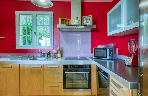 “As part of the water restriction measures linked to the drought in certain departments, please note that the rental swimming pool may be closed until the lifting of the legal restrictions authorizing the filling and topping up again. in water from all swimming pools and basins for private use. For more official information on measures to limit or suspend water use in France: Propluvia - Home (developpement-durable.gouv.fr) » beautiful, comfortable single-family house "Le Chêne". In the hamlet Mégier 3 km from the centre of Sabran, 4 km from the centre of Cavillargues, 10 km from the centre of Bagnols-sur-Cèze, in the residential district, 20 km from the river. Private: beautiful garden 1'300 m2 (fenced) with wildlife garden and trees, meadow, swimming pool fenced (8 x 4 m, depth 100 - 150 cm, seasonal availability: 07.May. - 15.Oct.). Outdoor shower, pool house with fridge and cooking stove, terrace, parking (for 3 cars) on the premises. Shop 4 km, supermarket 10 km, bus stop "Saint Gervais - Centre" 15 km.