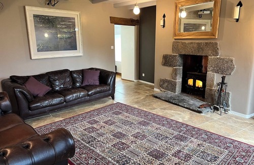 The living area has a welcoming log burning fire, TV in English, French, Dutch & German, and DVD player. It has large comfortable sofas. From the living room you enter the kitchen/ dining area, with its range cooker and large dining table. The kitchen is well equipped, including with a fridge-freezer, dishwasher, under cupboard lighting and microwave. There is also a utility and cloakroom.