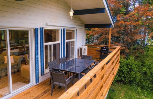 Le Chalet Blanc, lakefront with jacuzzi | Ski Chalet in Saint-Adolphe-d'Howard