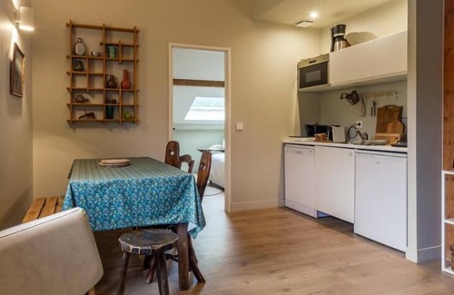 In a house with 3 guest rooms. On the 2nd floor (access by an external staircase then an internal staircase). Gîte composed of a living room with kitchenette area (no oven), mezzanine (height less than 1m80, access by a ladder - 2 single beds 90x190 cm), 2 bedrooms (3 single beds 90x200 cm with sink / 1 double bed 160x200 cm), bathroom (shower), separate toilet. Large shared grounds. Ski and bike storage. Private parking (5 cars). Enchanting setting for this cottage located in the heart of the Massif des Bauges. At the start of the hiking trails, you will have the choice for skiing in winter (4km from La Féclaz and the Savoie Grand Revard resort, 27 km from Aillons Margeriaz, 33 km from Semnoz). Apartment renovated with great taste, you immediately feel at home. Large outdoor space between woods and meadows where it will be good to rest. Great comfort (linen included, one bathroom per bedroom) and calm guaranteed.