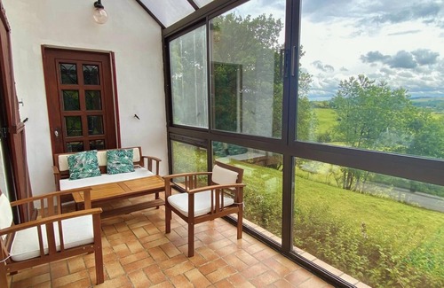 True haven of peace. Detached single storey gîte in the heart of a semi-wooded 3 hectare property with stunning views. Enclosed land 3000 m². Garage. Terrace. Veranda. Living room / lounge (insert fireplace, TV), kitchen (freezer, microwave). 2 ch. (1 double bed). 1 ch. (1 single bed). WC. Bathroom. Baby cot. Electric heating included within the limit of 400 kw / week. Cleaning option 38 euros. Fishing corner. Ping pong, bowling alley, 5 mountain bikes (3 children, 2 adults). 2 animals maximum accepted.