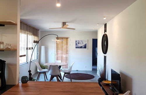 A BBQ grill and air conditioning are featured at this 2-bedroom, 1-bathroom rental. Bathroom amenities include a hair dryer, towels, and toilet paper. Prepare a home-cooked meal in the kitchen, complete with an oven, a stovetop, and a refrigerator, as well as an electric kettle, a microwave, and cookware. And thanks to the washer and dryer, you'll even be able to travel light. Other amenities include bed sheets, an ironing board, heating, and a dining table.