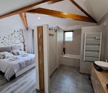 Le chemin des Bérands chambres d'hôtes Renaison is a recently renovated bed and breakfast in Renaison where guests can make the most of its garden and shared lounge. This property offers access to a terrace, table tennis, free private parking, and free Wifi. Guests can access the bed and breakfast via private entrance. At the bed and breakfast, every unit has a wardrobe, a flat-screen TV, a private bathroom, bed linen, and towels. Every room has a coffee machine, while selected rooms are equipped with a fully equipped kitchen with an oven, a stovetop, and kitchenware. Additional in-room amenities include fruit and chocolates or cookies. For visitors looking to embark on day trips to nearby landmarks, the bed and breakfast provides a selection of packed lunches. You can play darts at le chemin des Bérands chambres d'hôtes Renaison, and the area is popular for cycling and hiking. Outdoor play equipment is also available for guests at the accommodation. The Scarabée is 5 miles from le chemin des Bérands chambres d'hôtes Renaison, while André Vacheresse Area is 4.8 miles away. Clermont-Ferrand Auvergne Airport is 62 miles from the property.