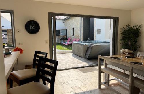 A 13-minute walk from Arnerault Beach in La Flotte, Le Clos des Figuiers villa pool and jacuzzi features accommodations with access to a hot tub and open-air bath. This property offers a private pool, free Wifi, and free private parking. L'Espace Encan is 14 miles away and La Rochelle Grosse-Horloge is 13 miles from the villa. Featuring a terrace and pool views, the villa includes 4 bedrooms, a living room, satellite flat-screen TV, an equipped kitchen, and 3 bathrooms with a walk-in shower and a hot tub. A private entrance leads guests into the villa, where they can enjoy some wine or champagne. The property has an outdoor dining area. Guests can also relax in the garden. La Rochelle Train Station is 14 miles from the villa, while Exhibition Park of La Rochelle is 14 miles from the property. La Rochelle - Île de Ré Airport is 9.3 miles away.