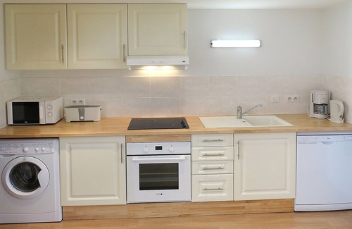 "Le Clos des Rives", 4-room apartment 86 m2 on 2 levels on 1st floor. Object suitable for 2 adults + 4 children. Beautiful and cosy furnishings: living/sleeping room with 1 double sofabed (160 cm, length 200 cm), dining table and satellite TV (flat screen), hi-fi system and DVD. Exit to the balcony. Open kitchen (oven, dishwasher, 4 ceramic glass hob hotplates, toaster, kettle, microwave, freezer, electric coffee machine, Capsules for coffee machine (Tassimo) extra). Sep. WC. Upper floor: 1 room with sloping ceilings with 1 double bed (2 x 90 cm, length 190 cm), shower. 1 room with sloping ceilings with 2 beds (90 cm, length 190 cm). 1 room with sloping ceilings with 1 french bed (160 cm, length 190 cm). Bathroom, sep. WC, double hand-basin. Electric heating. Balcony 18 m2. Balcony furniture, box-room. Facilities: washing machine, safe, iron, children's high chair, baby cot (extra). Internet (WiFi, free). Please note: non-smokers only. Maximum 2 pets/ dogs allowed. Smoke alarm.