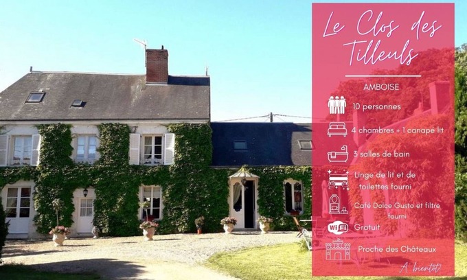 Le Clos des Tilleuls - Gite 10 people has 4 Bedrooms , 3 Bathrooms, and max occupancy of 10 people. The minimum rental for this property is 1 nights, but this can change depending on the season you plan on staying. Previous guests have given good rated it, and VRBO labeled it a top-rated House because of the excellent services rendered by the owner or manager of this House, and has consistently provided great experiences for their guests. Most families or guests that use it recommend it to their friends and some of them are repeat guests. House has a friendly neighborhood, and the Francueil has interesting places to visit. If you want to learn more about the House in Francueil, such as places to visit and things to do nearby, you can check below to learn more.