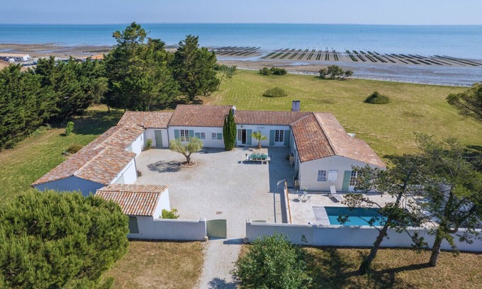 Welcome to Clos du Pertuis, an exceptional villa nestled on the island of Ré, in the picturesque village of La Flotte. Spread over a vast estate of 15,000m², this property embodies rustic luxury. With its 180m², peaceful location and sea view, it offers an incomparable holiday experience. This large house benefits from a privileged location, just a few minutes by bike from the medieval market of La Flotte, accessible via a customs path at the end of the property.Le Clos du Pertuis offers a unique relaxation experience with its magnificent 4x8m heated swimming pool. Inside, the villa offers 4 bright bedrooms, including a master suite with a private bathroom and sea view. Three other bedrooms, one of which is specially designed for children, provide all the comfort necessary for a family holiday. The property is oriented facing the ocean, offering exceptional brightness throughout the day. An isolated inner courtyard with a dining area overlooks the heated pool. And on the sea side, a terrace and a shelter will allow you to fully enjoy the soft Rétais evenings. A garage with an electrical outlet is also made available to you for added convenience.The Travel Paradise team will be at your disposal to make your experience on the Île de Ré as pleasant as possible, offering you a selection of activities tailored to your needs and handling all bookings with quality service providers.The assets of the villa:- A view and direct access to the sea- A large heated swimming pool facing south, 4x8 metres, secured by a roller shutter- A wooded park of 15,000m²- 180m² of living space with 4 beautiful bright bedrooms, 3 shower rooms, a fully equipped kitchen and numerous relaxation areas- A private and secure domain- 6 adult bicycles (adults only)4 bright bedrooms with new bedding:oBedroom 1 (master suite): double bed 160x200cm. Sea and pool view. Private bathroom with WC. Separate from the other three bedroomsoBedroom 2 (yellow bedroom): double bed 160x200cm (courtyard view)oBedroom 3 (blue bedroom): 2 single beds 90x200cm (can be joined to form a double bed). Sea viewoBedroom 4 (children's room/dormitory): 4 beds: 2 single beds 80x200cm and 1 bunk bed (2 beds of 80x200cm).Please note:Household linen is optional at €25/person and includes: Bed linen / bath towels / kitchen linen / beach foutas