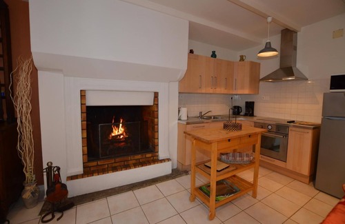 GR.FL: Living room with kitchen area, lounge area with sofa bed, fireplace. Bedroom 1: double bed, child's bed. Bathroom WC. Electric heating. UPSTAIRS: Bedroom 2: double bed, single bed. A semi-detached, rustic gite adjoining the owner's home, 500m from the village and 12km from St Malo and beaches. It has an enclosed courtyard with patio furniture and barbecue.