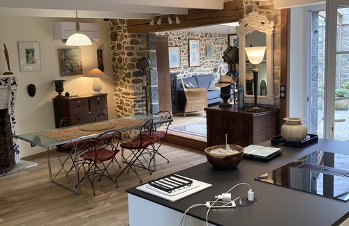 At 957 meters from the south beach and 1.578 km from the magnificent beaches of Sables d'or les pins, in the quiet heart of the village of Plurien, the Clos Saint Jacques authentic fisherman's house extended by an architect's wing guarantees you success of an authentic quality stay, The house, entirely renovated and extended by an architect's wing, favors the quality of materials, wood, stone, metal and glass, the circulation of light and the inhabitants. The neat and contemporary decoration combines furniture brought from long trips and contemporary furniture. Le Clos is the antithesis of seasonal rentals, it is a real family home where comfort and the environment have been designed for a quality stay. Finally to be happy, let's live hidden, this could be the adage that best summarizes the clos, although in the center of the town of Plurien, the property is fully organized around a garden and an invisible south facing terrace from the street where absolute silence reigns.