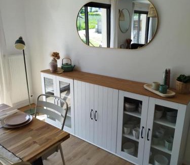 A recently renovated vacation home, Le Cocon de Jules&Chloé offers accommodations in Cléder. This property offers access to a terrace and free private parking. Lampaul-Guimiliau Parish Close is 19 miles away and Brest-Iroise Golf Course is 26 miles from the vacation home. With free Wifi, this 1-bedroom vacation home provides a flat-screen TV, a washing machine, and a fully equipped kitchen with a dishwasher and oven. The parquet floors, fireplace, and peaceful vibe add to the ambience of the room. The property has an outdoor dining area. Guests can also relax in the garden. Baie de Morlaix Golf Course is 14 miles from the vacation home, while Saint-Thégonnec Parish Close is 19 miles away. Brest Bretagne Airport is 29 miles from the property.