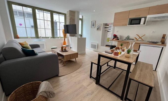 Stay in a fully renovated apartment featuring high-quality materials and tasteful decor, combining charm, comfort, and functionality. Ideally located in the city center, just a 10-minute walk from the train station and Niort’s renowned insurance district, you’ll enjoy the lively atmosphere while benefiting from the tranquility of a peaceful street.