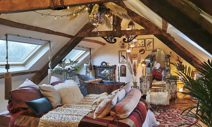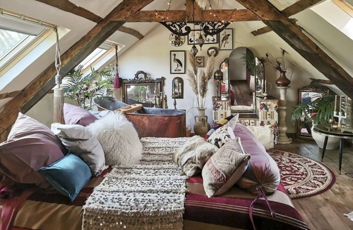 This quirky cottage is like a glamorous little jewellery box filled with delights for the eyes and senses… an attractive array of vintage, antique and modern pieces, all individually selected and choreographed by the owner.
