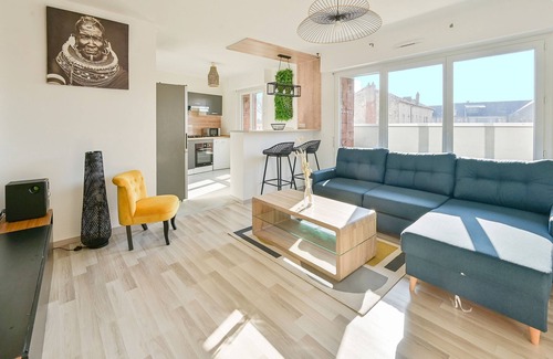 Cocoonr/Bookandpay agency offers this charming 81 m² flat for rent in Nancy, which can accommodate up to 4 people. Located on the 3rd floor (no lift), it comprises a pretty 39 m² living room, a fitted kitchen, two good bedrooms and a shower room. Wi-Fi (fiber optics), bed linen and towels included, we're waiting for you!
