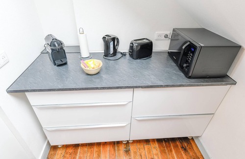 Prepare a home-cooked meal in the kitchen, complete with an oven, a stovetop, and a refrigerator, as well as a coffee maker, an electric kettle, and a microwave. Enjoy the free WiFi and TV. Bathroom amenities include a hair dryer, towels, and toilet paper. And there is a laundromat nearby so you can pack a bit lighter. Other amenities at this 1-bedroom, 1-bathroom rental include a dining area, bed sheets, an ironing board, and heating.