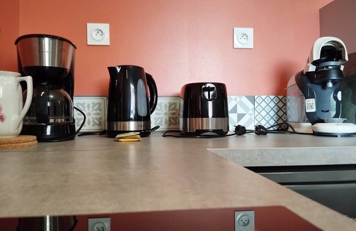 - Fully equipped kitchen (oven, dishwasher, refrigerator, filter coffee maker, Tassimo, kettle, 3-burner induction hob, refrigerator, dishes, cutlery, and kitchen utensils)
