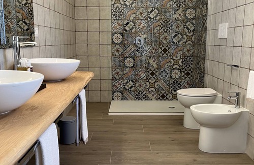 Le Cornici - Cascina di Charme offers 5 air-conditioned accommodations with minibars and espresso makers. Pillowtop beds feature Frette Italian sheets, down comforters, and premium bedding. A pillow menu is available. 32-inch flat-screen televisions come with satellite channels. Bathrooms include showers with rainfall showerheads, slippers, bidets, and complimentary toiletries.
