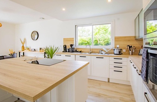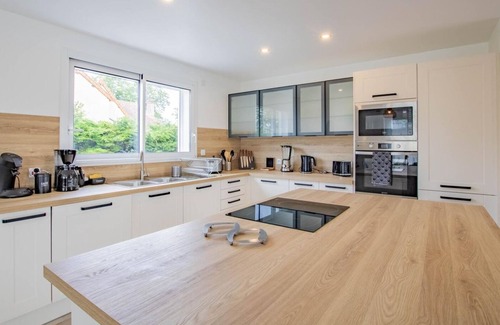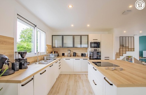 Reunionese by birth & Burgundians by adoption, both passionate about gardening (organic vegetable garden & henhouse managed in an ecological spirit for the pleasure of fresh eggs during your stay, to discover on site), Magalie & Patrice welcome you to the of an elegant contemporary style villa, nestled in a quiet cul-de-sac, in the heart of a small residential village. Nestled in the heart of the Charolais countryside, in the heart of the sublime local bocage (welcome in season the famous Charolais cows) & the green Ozolette valley (& its fish-filled river), this peaceful little rural village backed by a wood has a " citystade" (located just a stone's throw away) and enjoys a magnificent, perfectly preserved rolling rural & natural setting, mixing agriculture & open nature, between bucolic pasture meadows, beautiful wild forests, rivers & ponds, not far from the first foothills of the Massif du Beaujolais (vast wild forest area of gentle mountains). Gîte of great comfort and standing. Spacious & bright. Large living room of 56m². Warm contemporary country style with Nordic inspiration. Zen & very gentle atmosphere. Lots of charm & character. Cozy & very cozy. Complete quality equipment. Large sheltered terrace opening onto a pleasant enclosed grassy garden of 150m², planted with trees (cherry, plum, fig... / picking possible) with a mini aromatic vegetable garden. Composition: Detached house neighboring the owners' house (total independence). Wifi (fiber). PAC heating. Gîte on two levels. Ground floor: living room-kitchen-lounge (1 sofa bed 1 p. 115x190cm as extra), 1 bedroom (double bed 160x200cm) with private bathroom (shower), separate toilet. 1st floor: 3 bedrooms (double bed 140x190cm / 2 single beds 100x200cm / double bed 140x190cm), bathroom (bath), separate toilet. Covered terrace + enclosed garden (150m²) + garage (1 space) + bicycle storage + private parking. All amenities including supermarkets 5 km away.