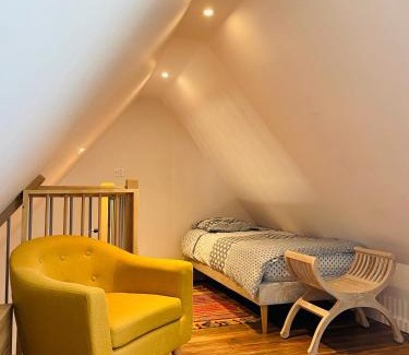 19 miles from Saint-Thégonnec Parish Close in Guimaëc, Le Courlis provides accommodations with access to a hot tub. Both free Wifi and private parking are accessible at the vacation home free of charge. The property features barbecue facilities and parking on-site. Featuring a terrace and garden views, the vacation home includes 1 bedroom, a living room, flat-screen TV, an equipped kitchen, and 1 bathroom with a hot tub and a bath. A private entrance leads guests into the vacation home, where they can enjoy some chocolates or cookies. The property has an outdoor dining area. Guests can relax in the garden at the property. Saint-Samson Golf Course is 20 miles from Le Courlis, while Baie de Morlaix Golf Course is 21 miles from the property. Brest Bretagne Airport is 40 miles away.