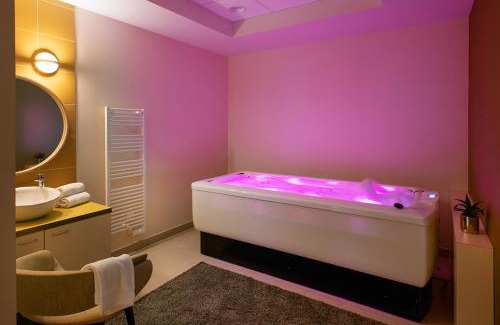 Le Critérium in Écouflant provides accommodations with a fitness center, an indoor pool, and massage services. There's a spa and wellness center at this property with a sauna, a wellness packages, and a beauty services. There's a sun terrace and guests can make use of free Wifi, free private parking, and an electric vehicle charging station. All units comprise a seating area, a dining area, and a fully equipped kitchen with various cooking facilities, including a microwave, a toaster, a fridge, and a stovetop. There's a private bathroom with walk-in shower in some units, along with bathrobes, slippers, and a hair dryer. At the condo hotel, units have a flat-screen TV and a safety deposit box. A continental breakfast is available at the condo hotel. Guests are welcome to eat at the on-site family-friendly restaurant, which is open for dinner and lunch. Guests can also relax in the garden or in the shared lounge area. Angers Expo is a 17-minute walk from Le Critérium, while Terra Botanica is 5.3 miles from the property. Nantes Atlantique Airport is 67 miles away.